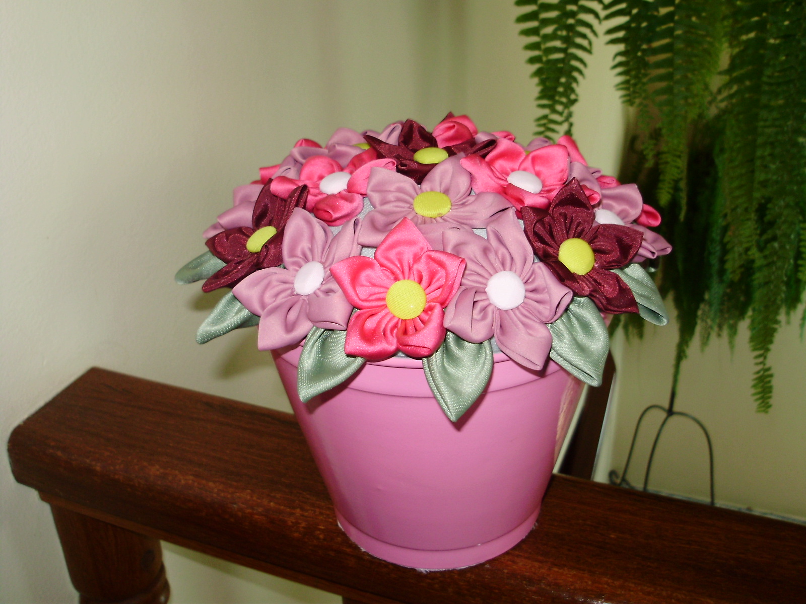 Enfeitei o vasinho rosa para usá-lo na porta do meu atelier...